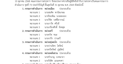 รายชื่อผู้มีสิทธิเข้ารับการสรรหาเป็นคณะกรรมการดำเนินการ ชุดที่ 73 ประจำปีบัญชีสิ้นสุดวันที่ 31 ตุลาคม พ.ศ. 2569