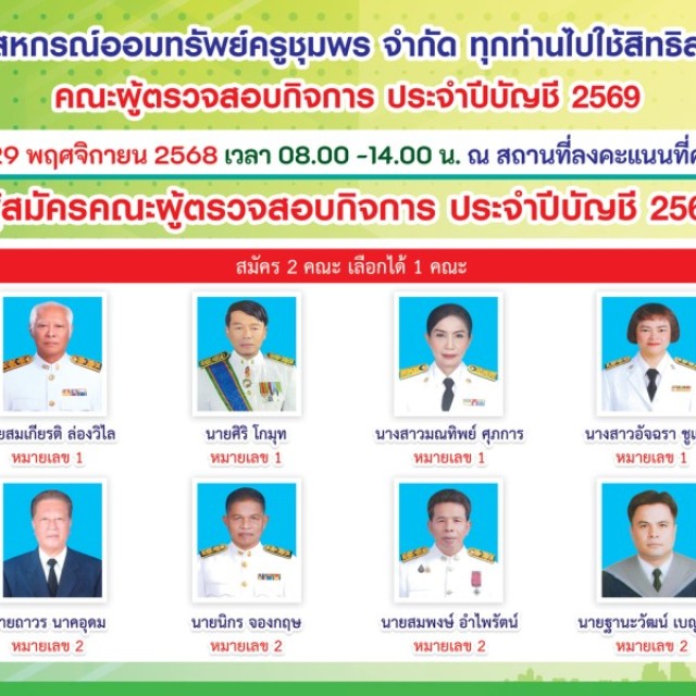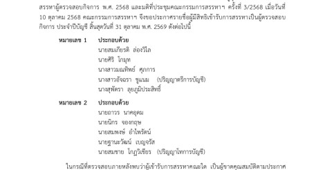 รายชื่อผู้มีสิทธิเข้ารับการสรรหาเป็นผู้ตรวจสอบกิจการ ประจำปีบัญชีสิ้นสุดวันที่ 31 ตุลาคม พ.ศ. 2569