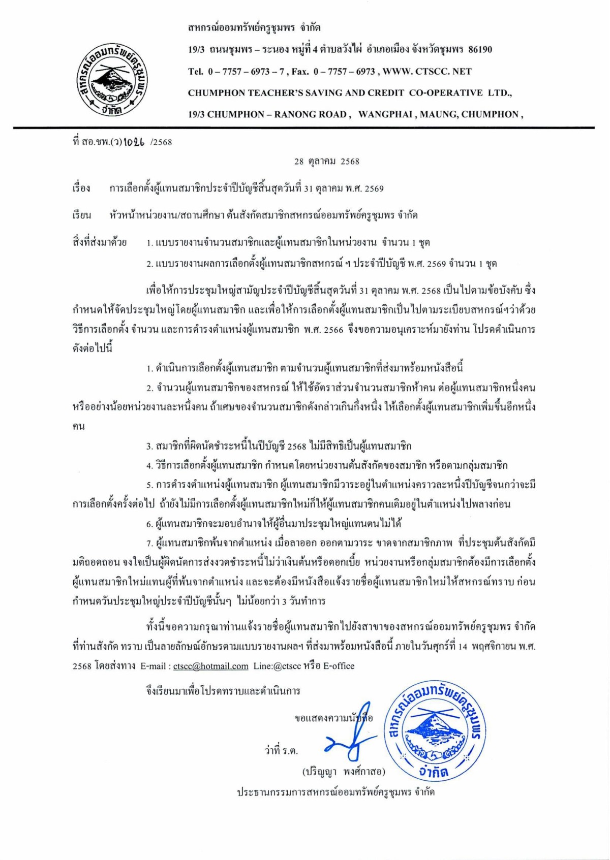 การเลือกตั้งผู้แทนสมาชิก ประจำปีบัญชีสิ้นสุดวันที่ 31 ตุลาคม พ.ศ. 2569