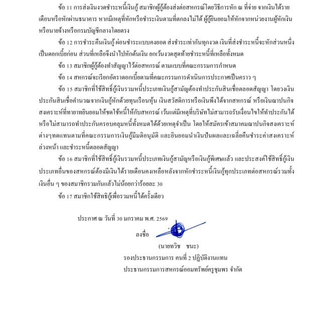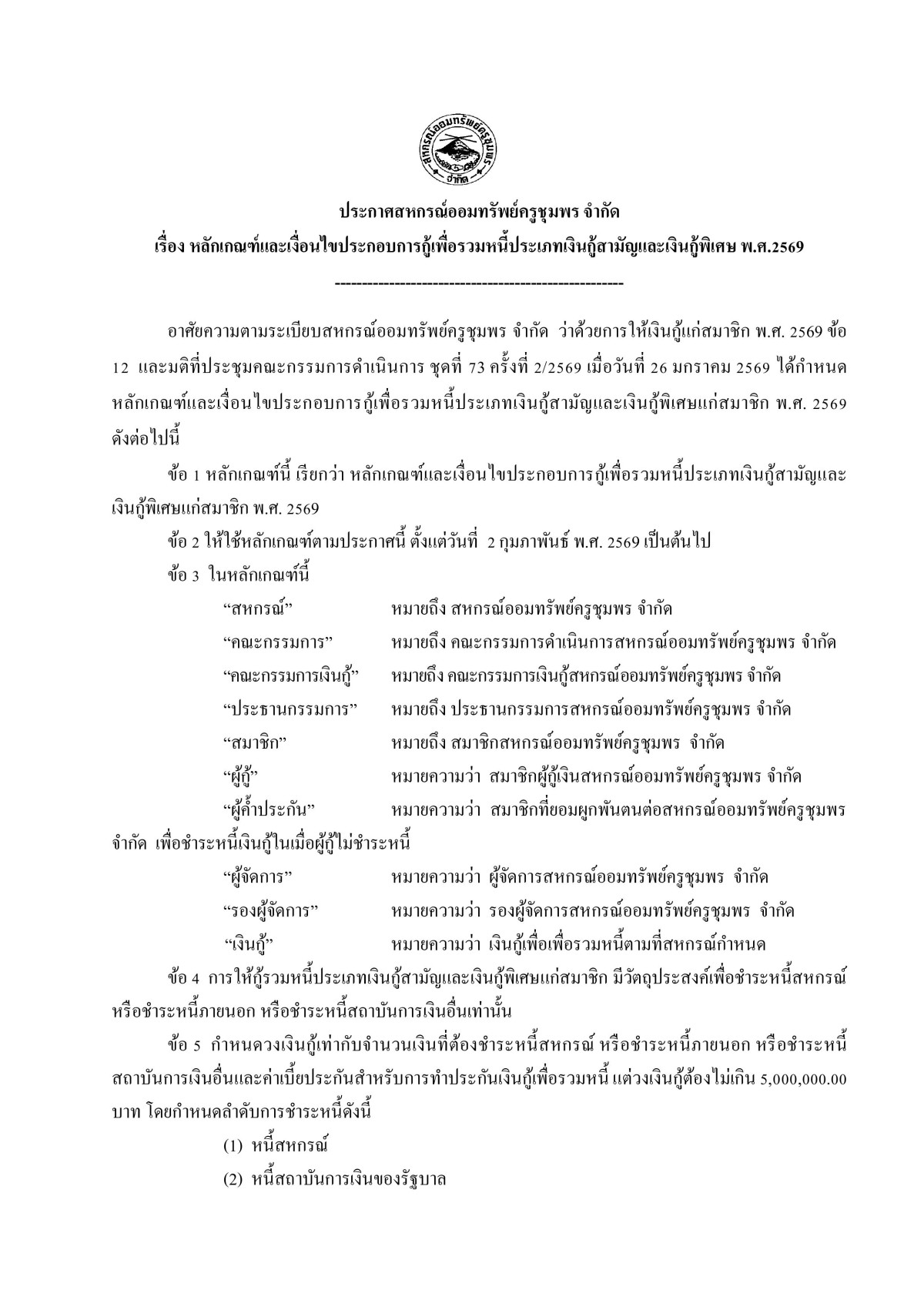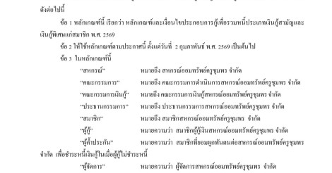 หลักเกณฑ์และเงื่อนไขประกอบการให้เงินกู้เพื่อรวมหนี้ประเภทเงินกู้สามัญและเงินกู้พิเศษ พ.ศ. 2569