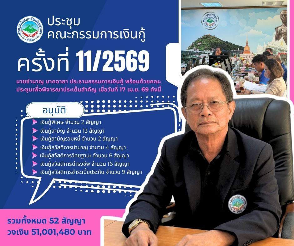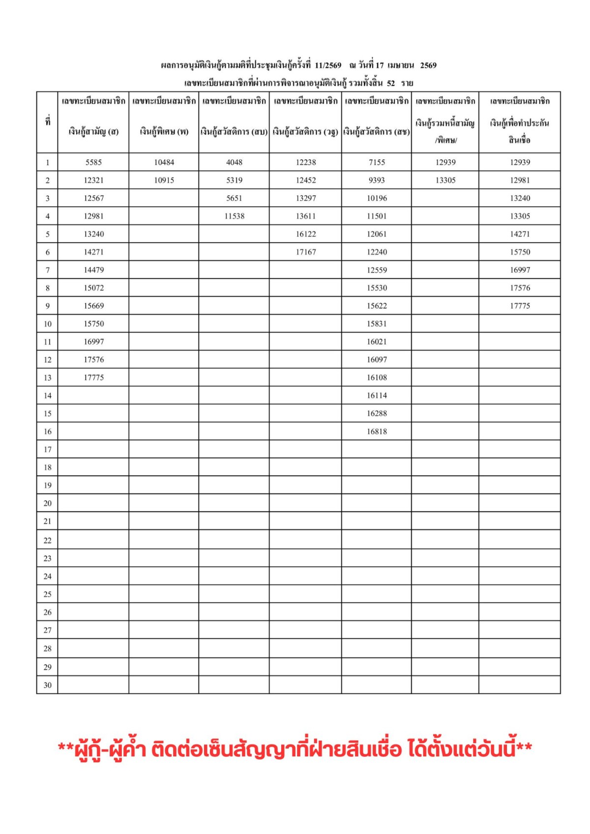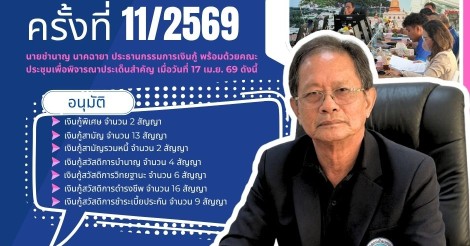 ผลการอนุมัติเงินกู้ตามมติที่ประชุมเงินกู้ครั้งที่ 11/2569 ณ วันที่ 17 เมษายน 2569