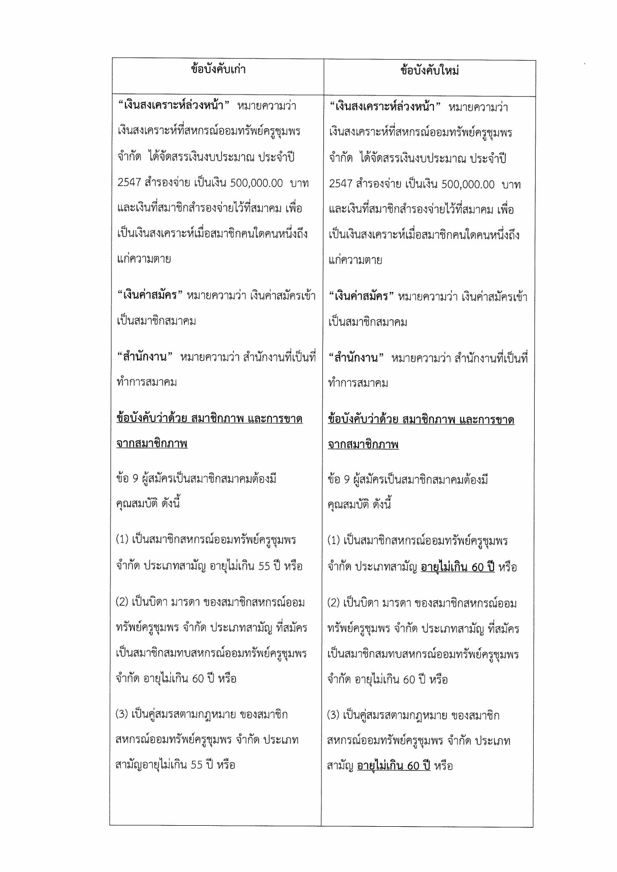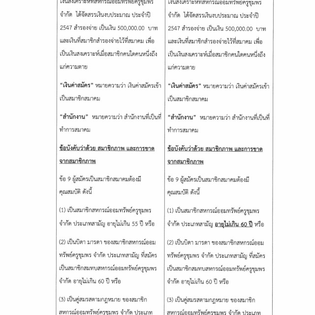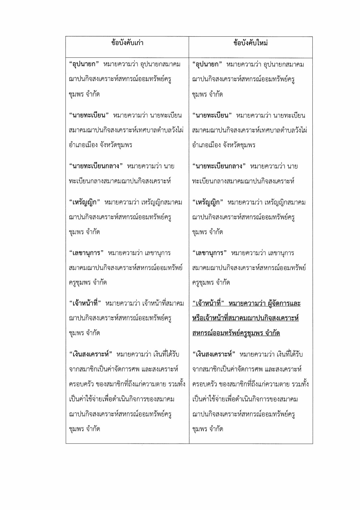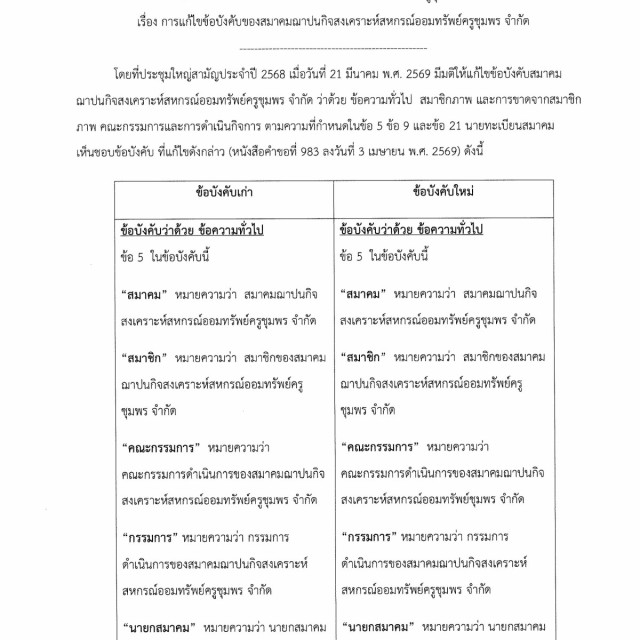 การแก้ไขข้อบังคับของสมาคมฌาปนกิจสงเคราะห์สหกรณ์ออมทรัพย์ครูชุมพร จำกัด