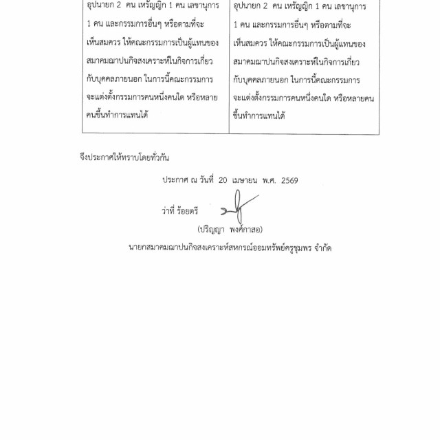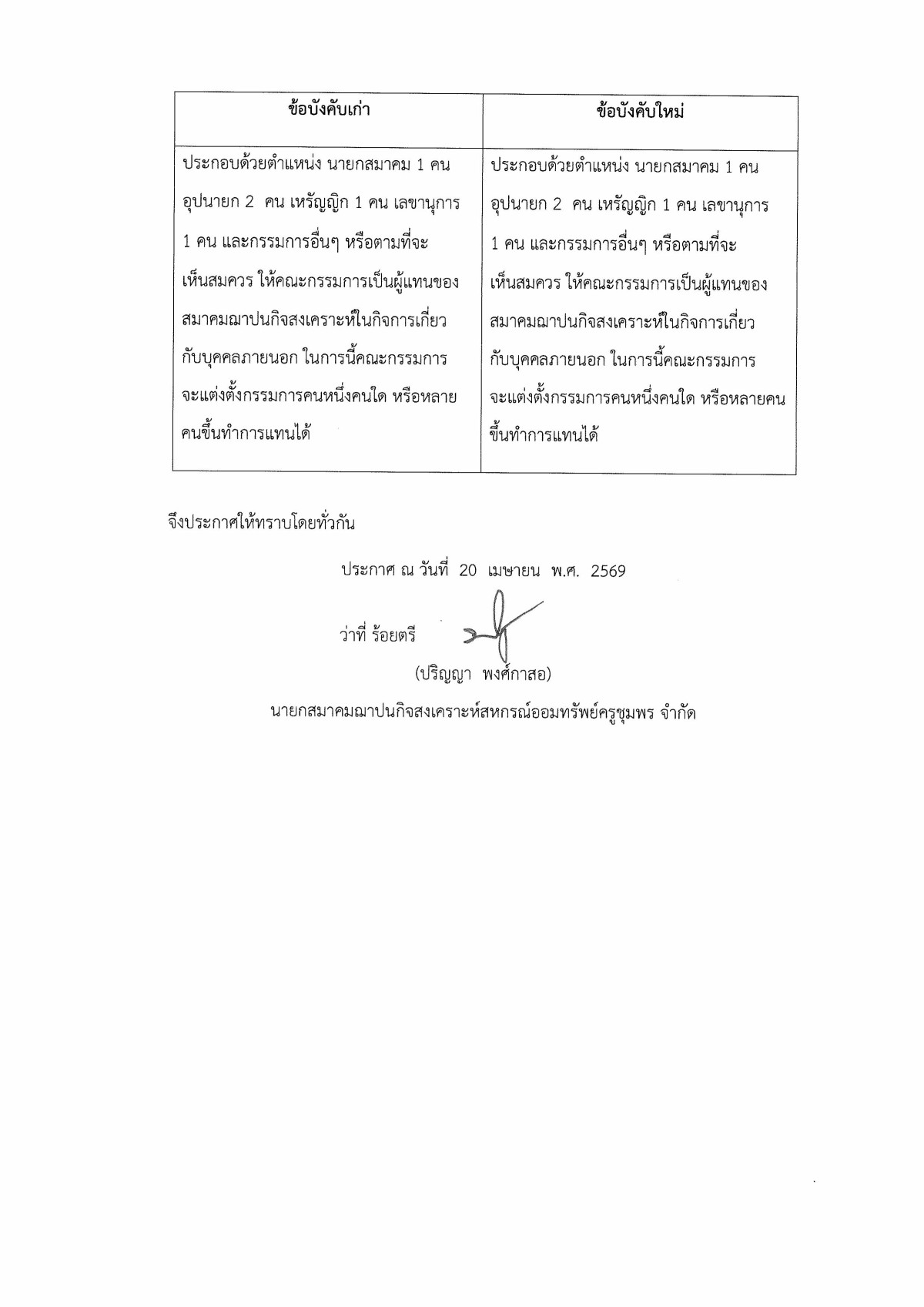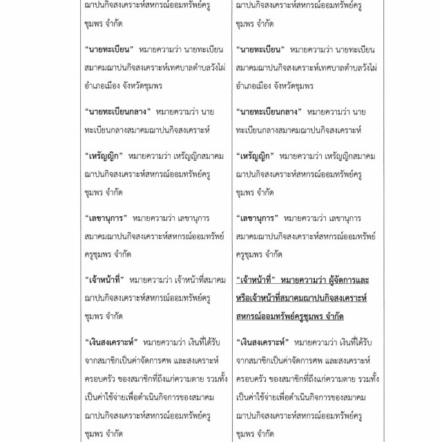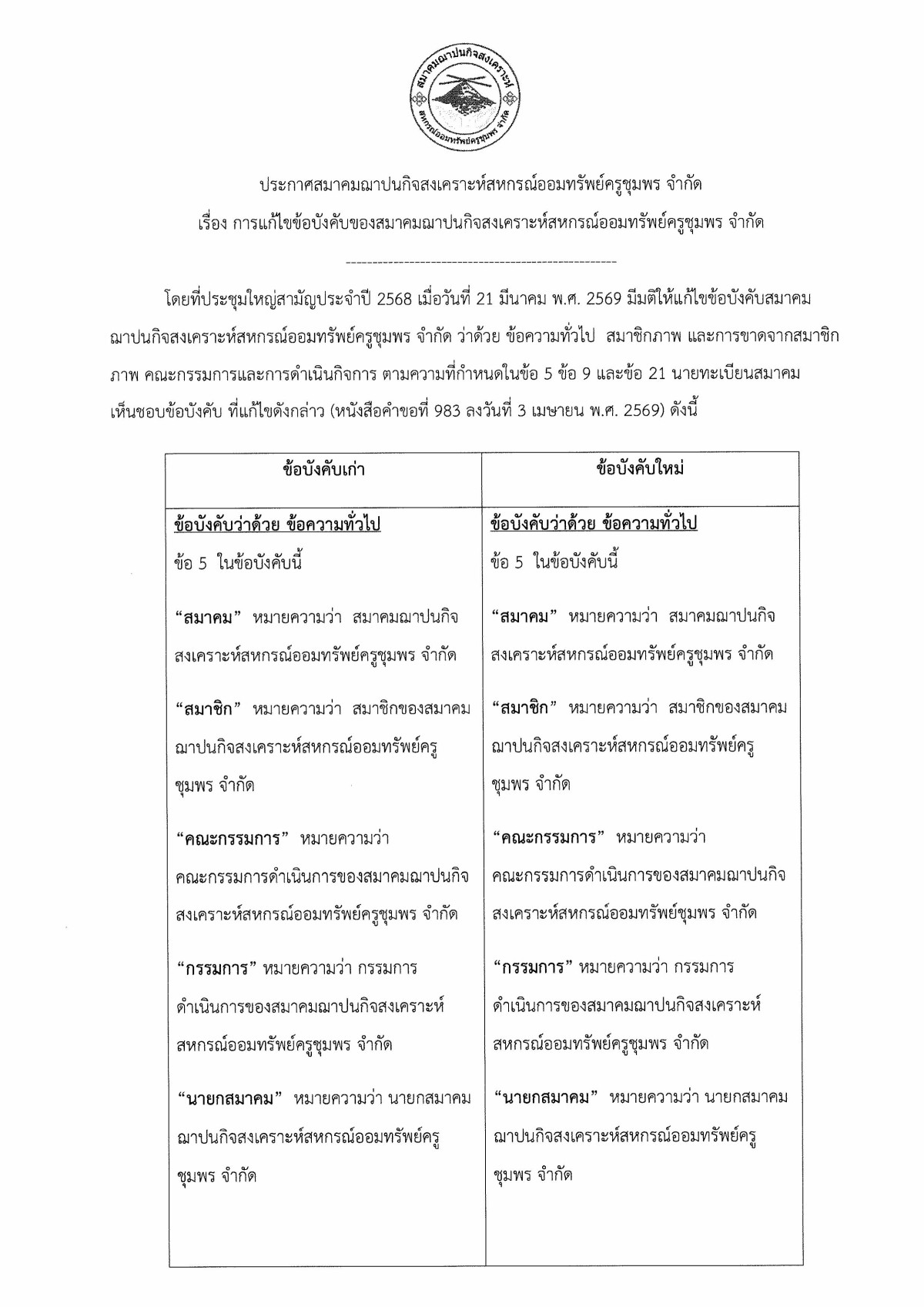 การแก้ไขข้อบังคับของสมาคมฌาปนกิจสงเคราะห์สหกรณ์ออมทรัพย์ครูชุมพร จำกัด