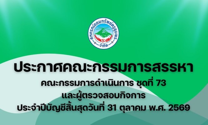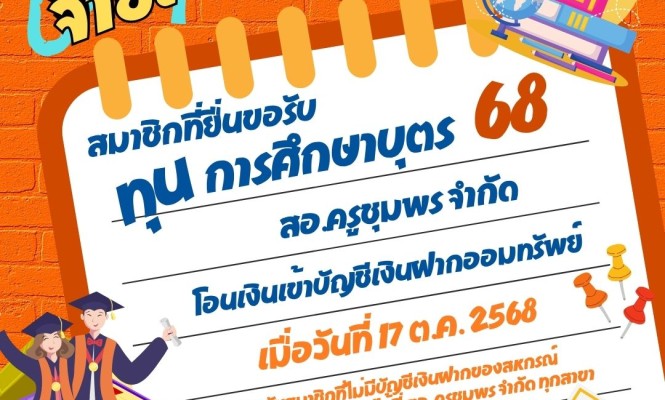 เมื่อวันจันทร์ที่ 3 กุมภาพันธ์ พ.ศ. 2568 สหกรณ์ออมทรัพย์ครูชุมพร จำกัด ประกอบด้วย นางสาวพรพรรณ์ พรมส...