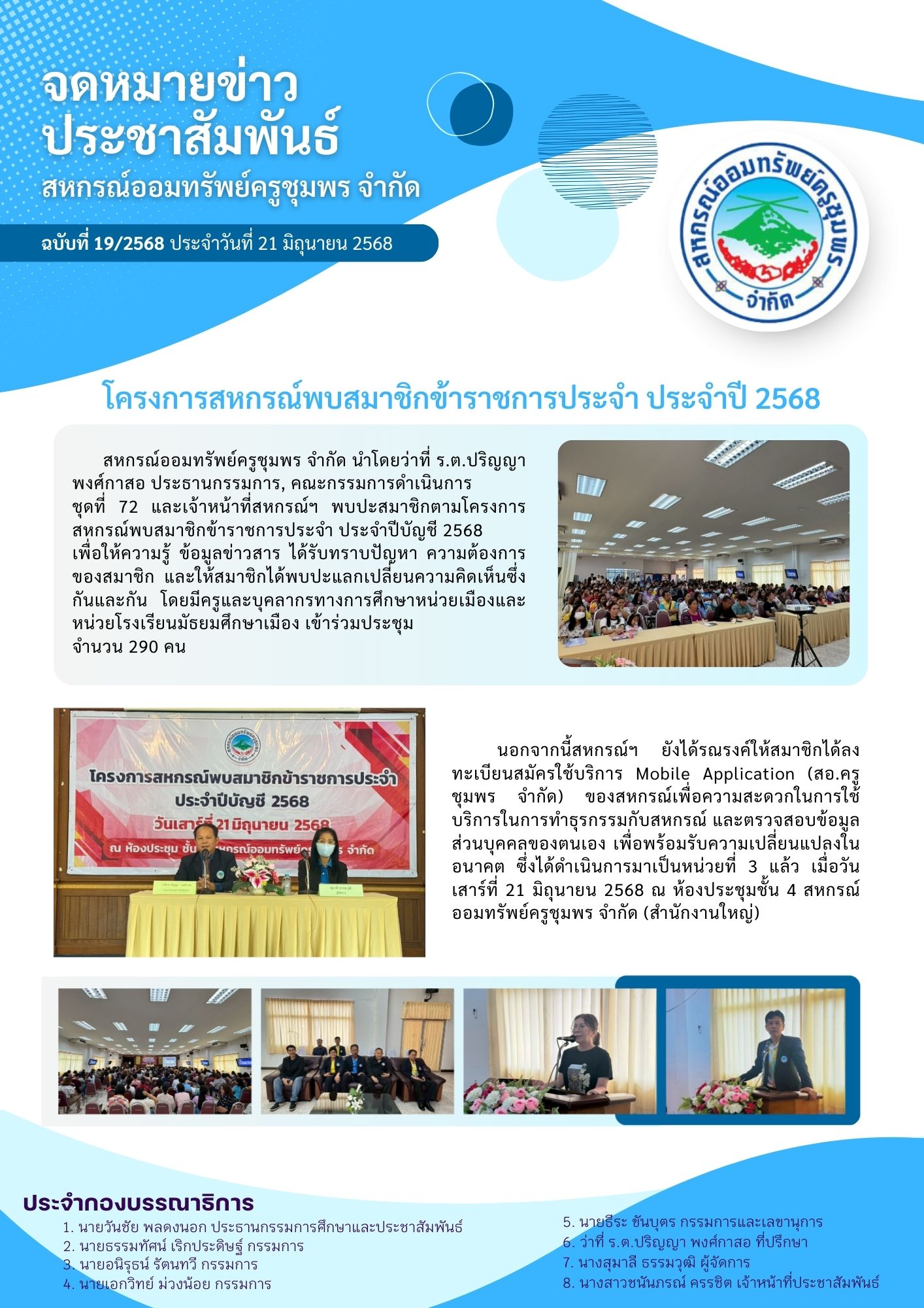 จดหมายข่าวประชาสัมพันธ์ สหกรณ์พบสมาชิกข้าราชการประจำ (จังหวัด) ประจำปีบัญชี 2567