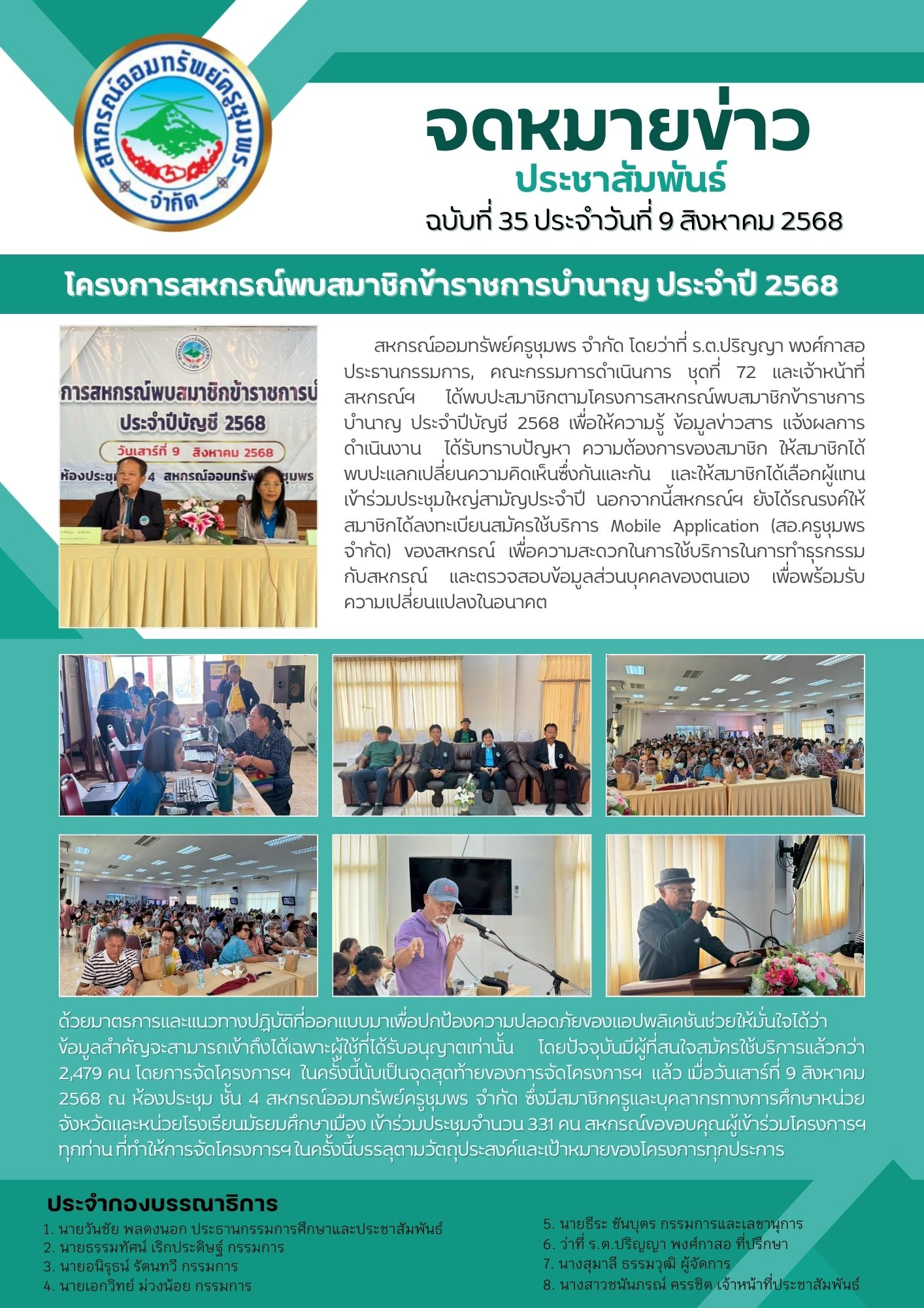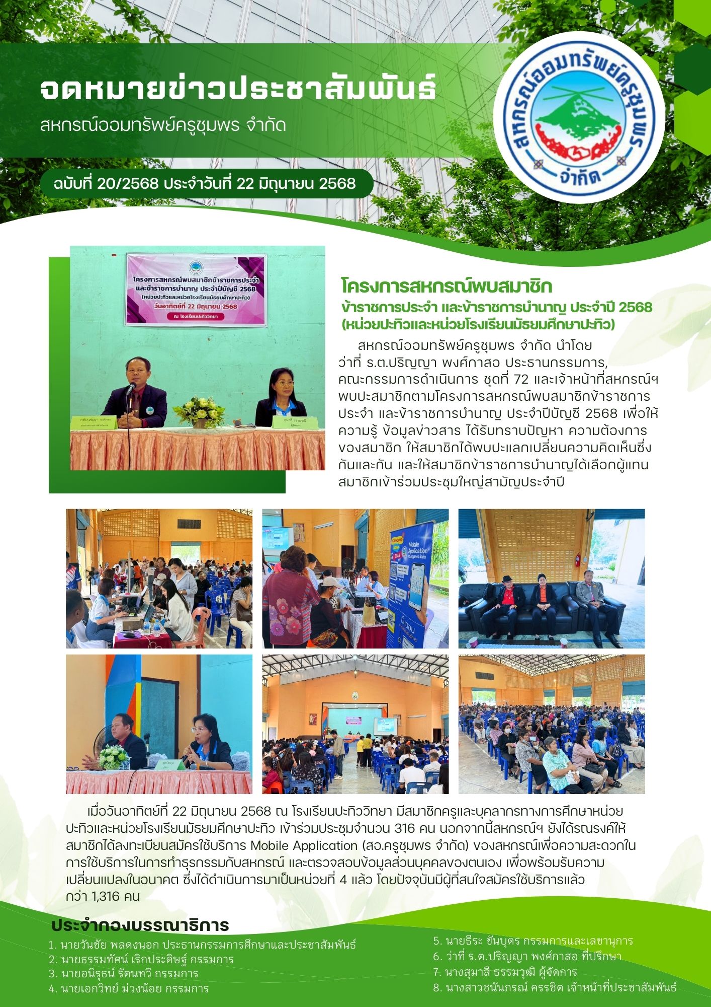 จดหมายข่าวประชาสัมพันธ์ สหกรณ์พบสมาชิกข้าราชการประจำ (เมือง 1-5) ประจำปีบัญชี 2567