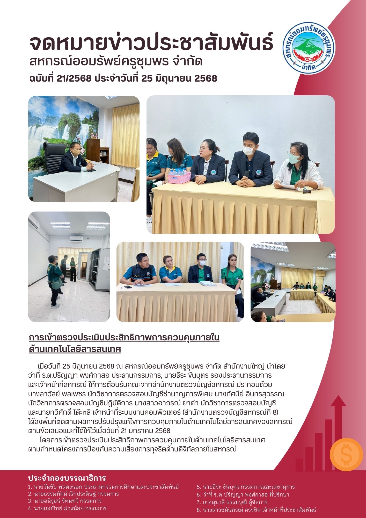 จดหมายข่าวประชาสัมพันธ์ เข้าตรวจประเมินประสิทธิภาพการควบคุมภายในด้านเทคโนโลยีสารสนเทศ