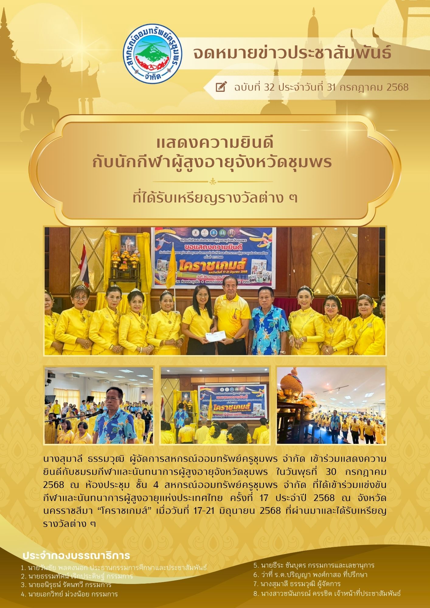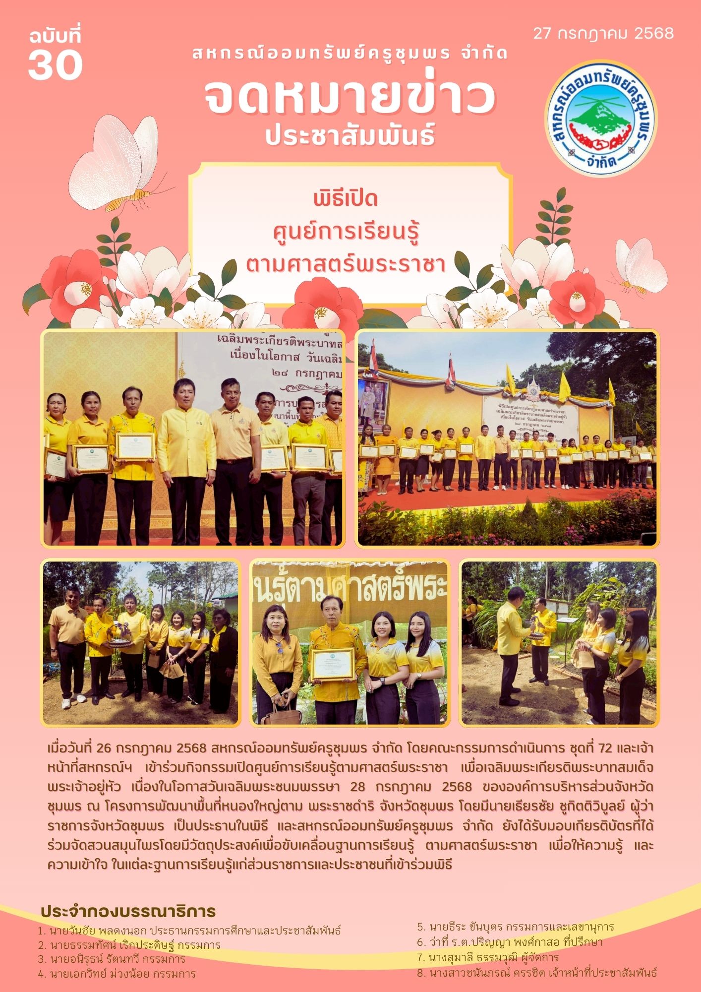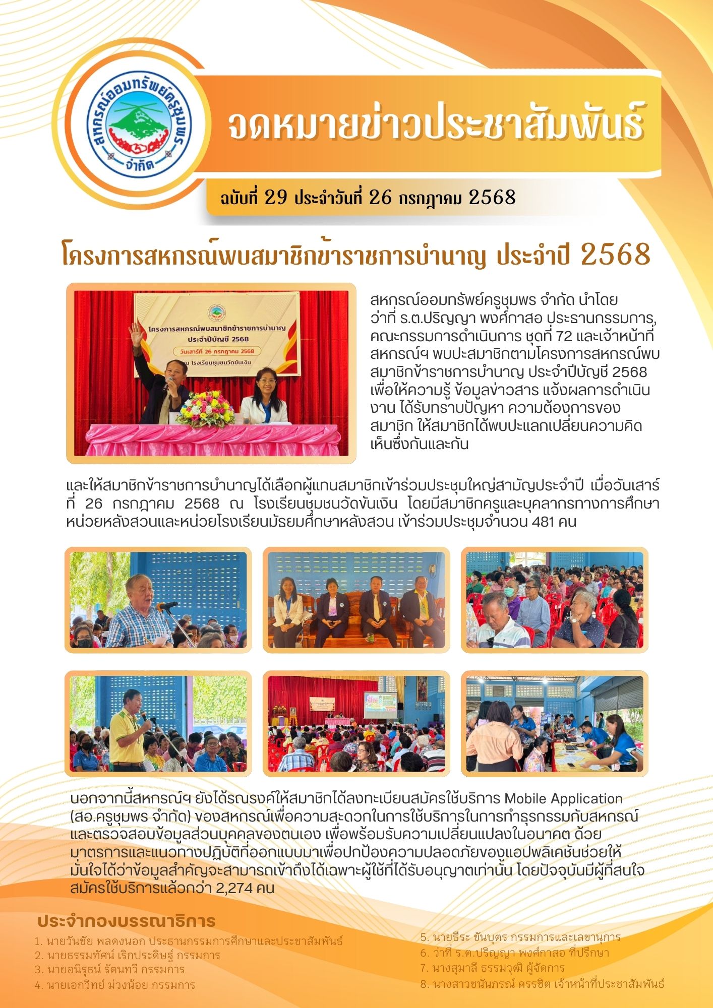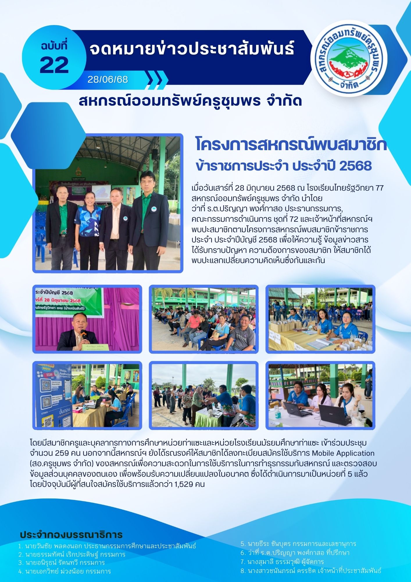 จดหมายข่าวประชาสัมพันธ์ สหกรณ์พบสมาชิกข้าราชการครูบำนาญจังหวัดชุมพร