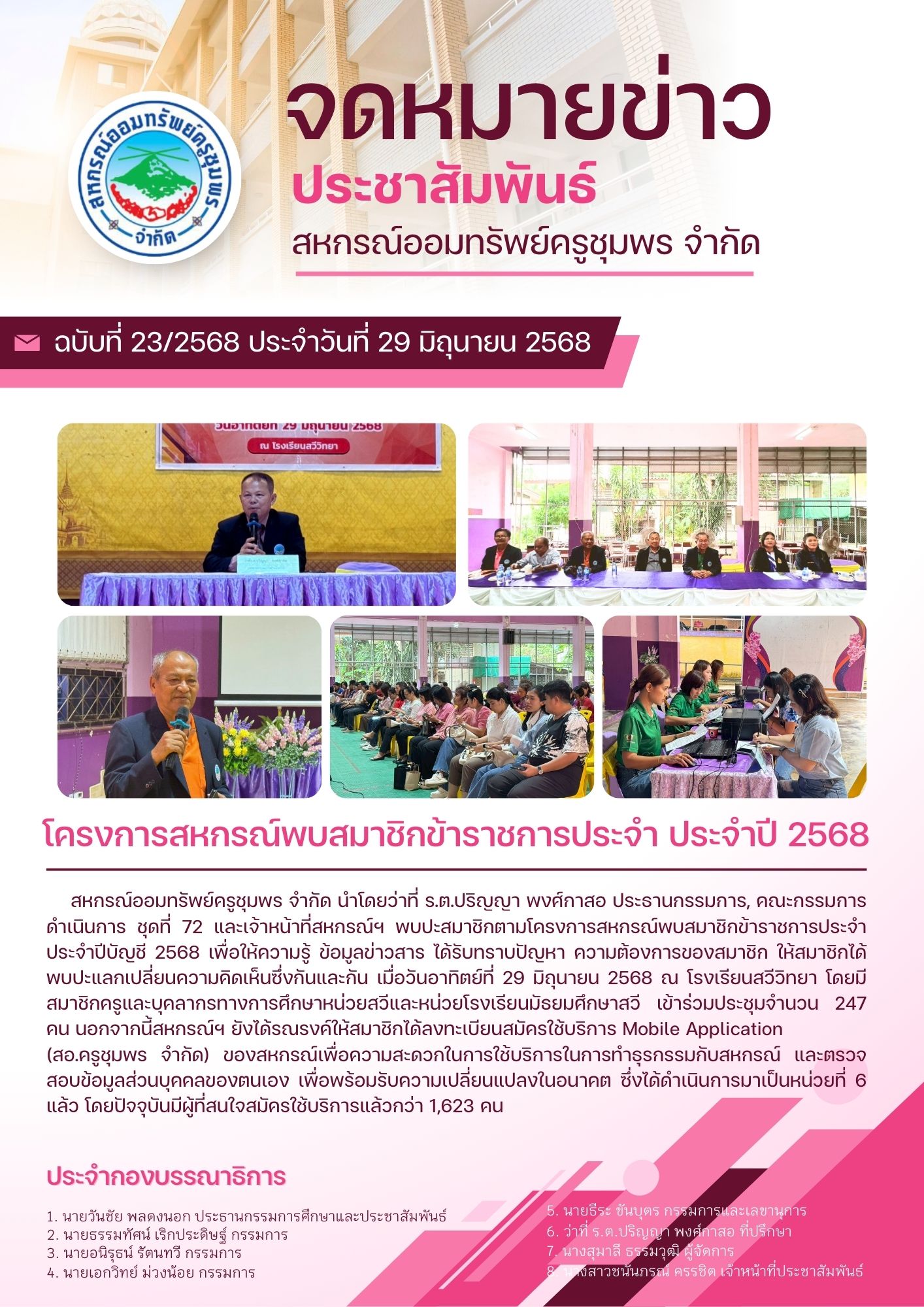 จดหมายข่าวประชาสัมพันธ์ สหกรณ์พบสมาชิกข้าราชการประจำ (สวี) ประจำปีบัญชี 2567