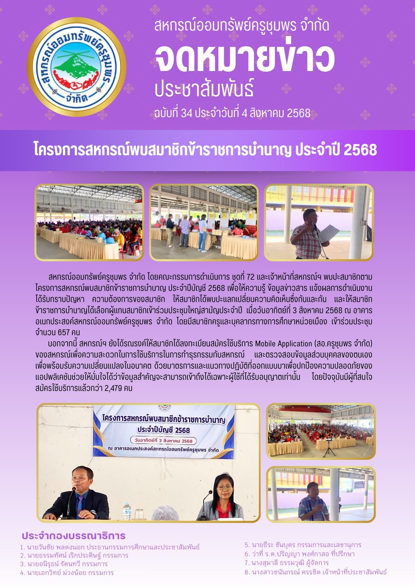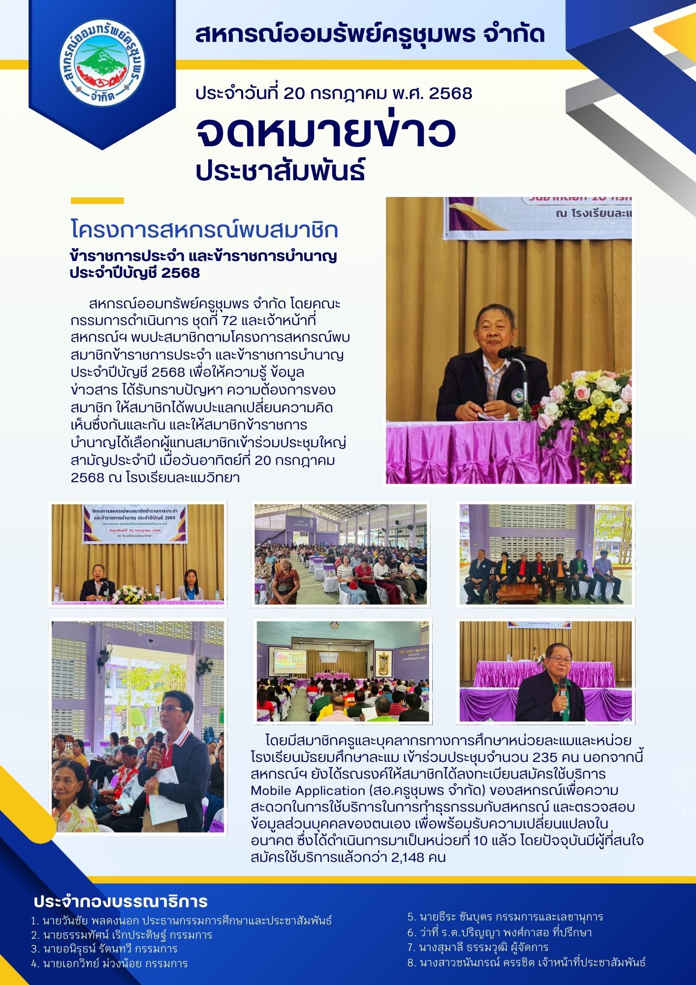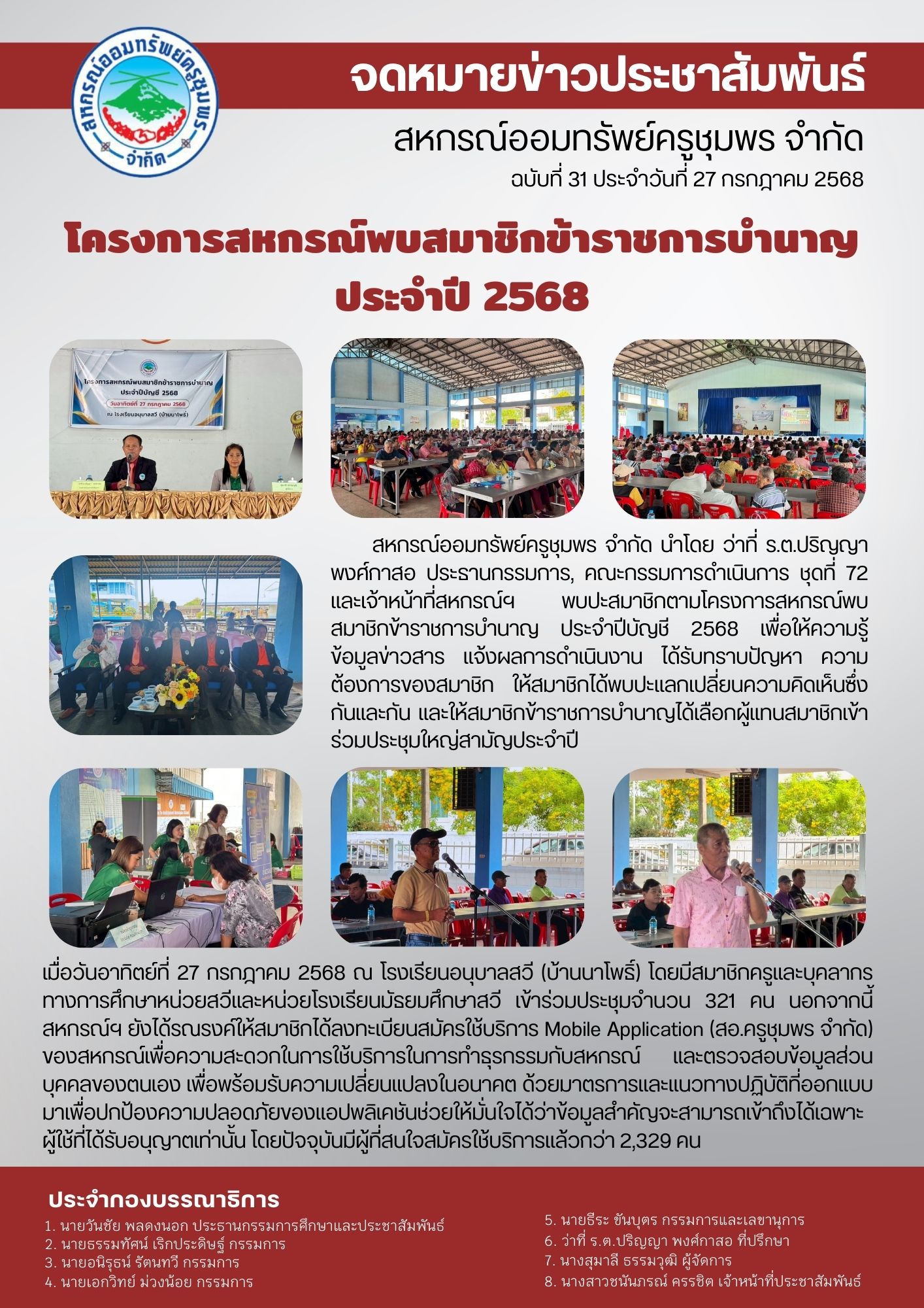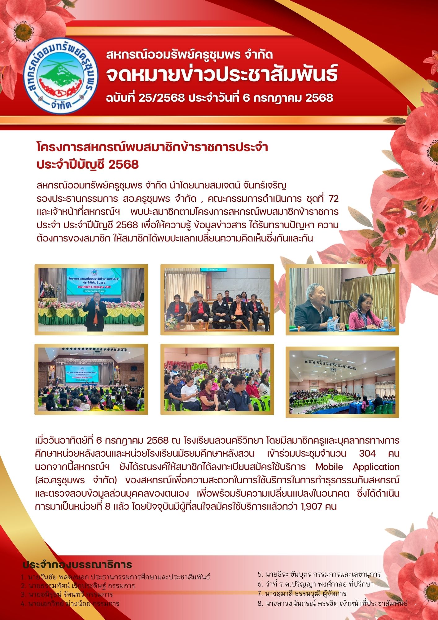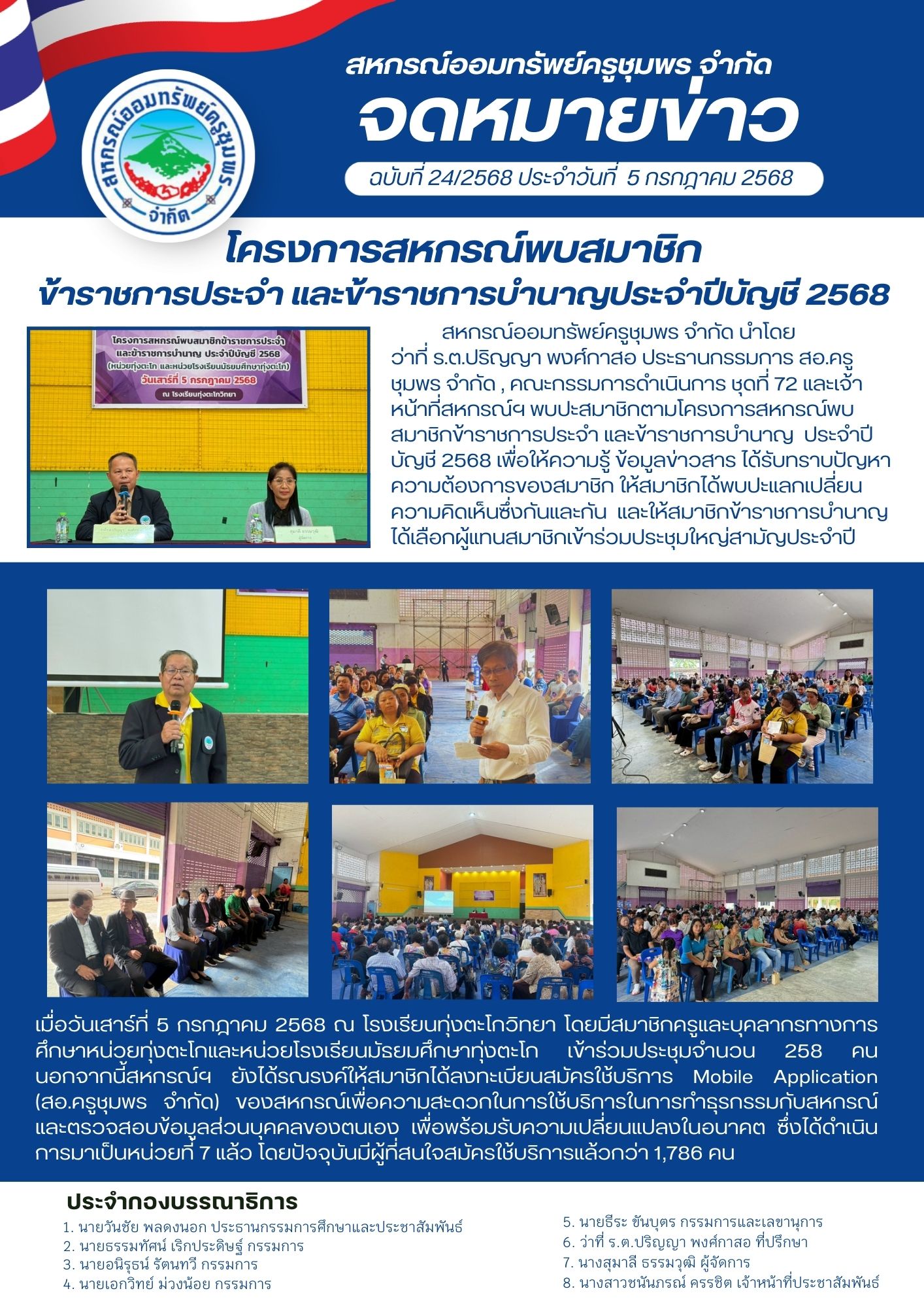 โครงการสหกรณ์พบสมาชิกข้าราชการประจำ ประจำปี 2568 (หน่วยเมืองและหน่วยโรงเรียนมัธยมศึกษาเมือง)