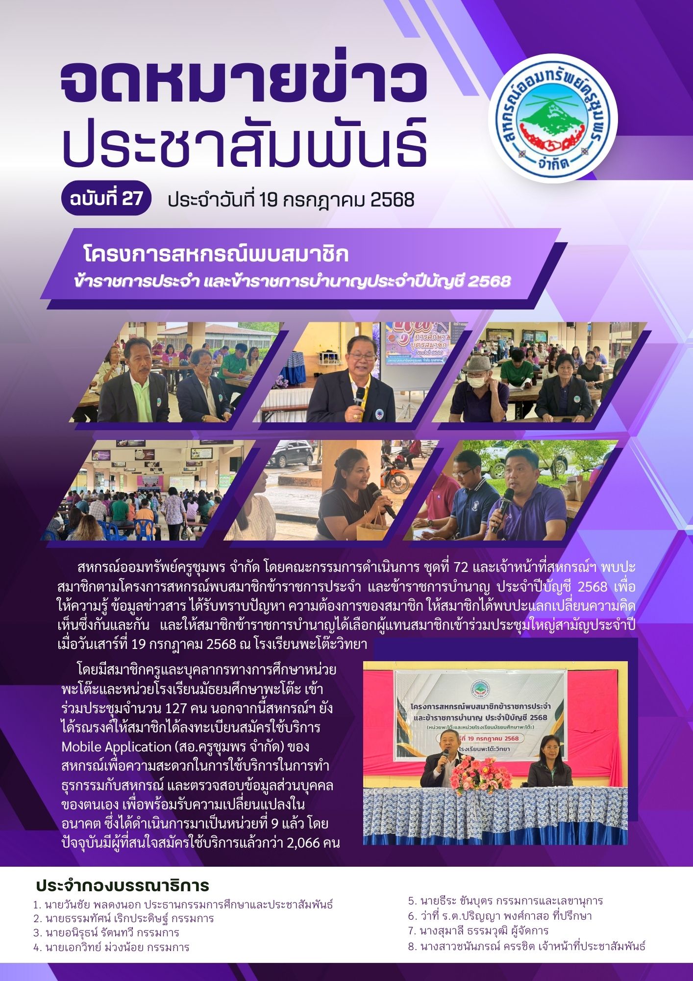 จดหมายข่าวประชาสัมพันธ์ สหกรณ์พบสมาชิกข้าราชการประจำ (พะโต๊ะ) ประจำปีบัญชี 2567