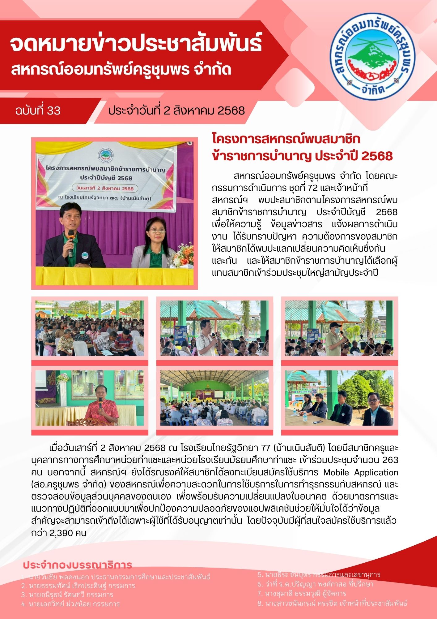 จดหมายข่าวประชาสัมพันธ์ สหกรณ์พบสมาชิกข้าราชการประจำ (เมือง) ประจำปีบัญชี 2567
