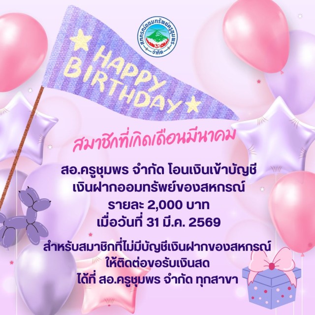 | เงินให้กู้สวัสดิการ | 2,708 | ราย | 890.45 | ล้านบาท |