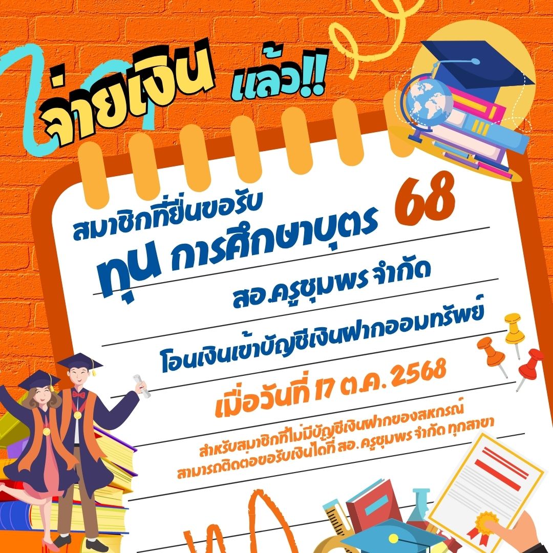 การจ่ายเงินทุนการศึกษาสำหรับบุตรสมาชิก ประจำปีบัญชี พ.ศ. 2568