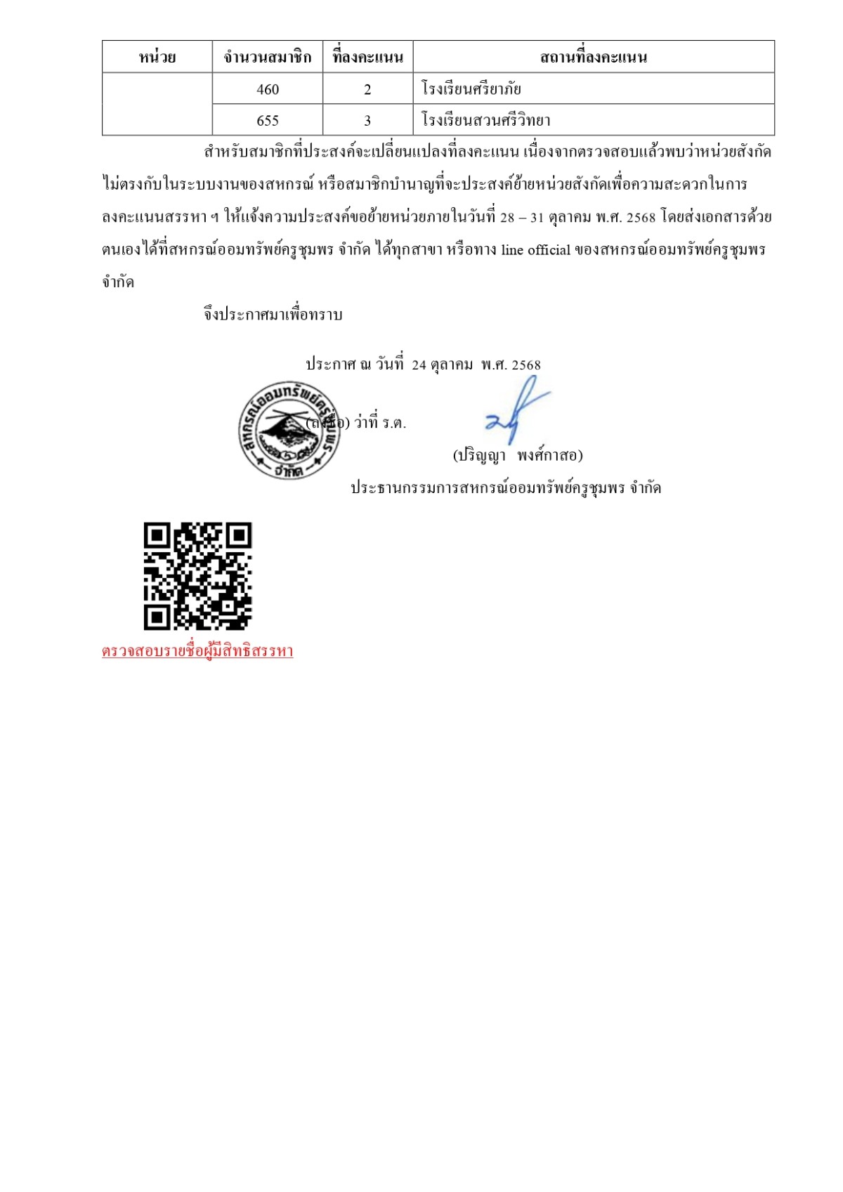 แจ้งรายชื่อสมาชิกผู้มีสิทธิลงคะแนนสรรหา