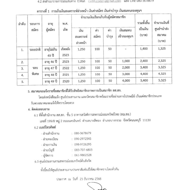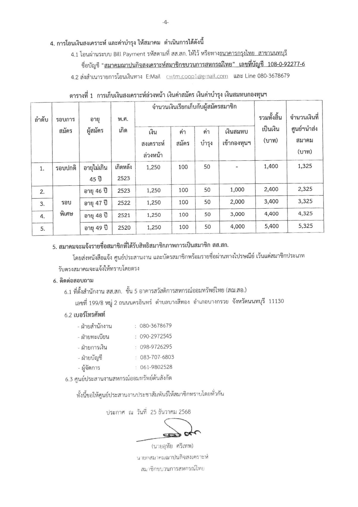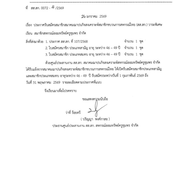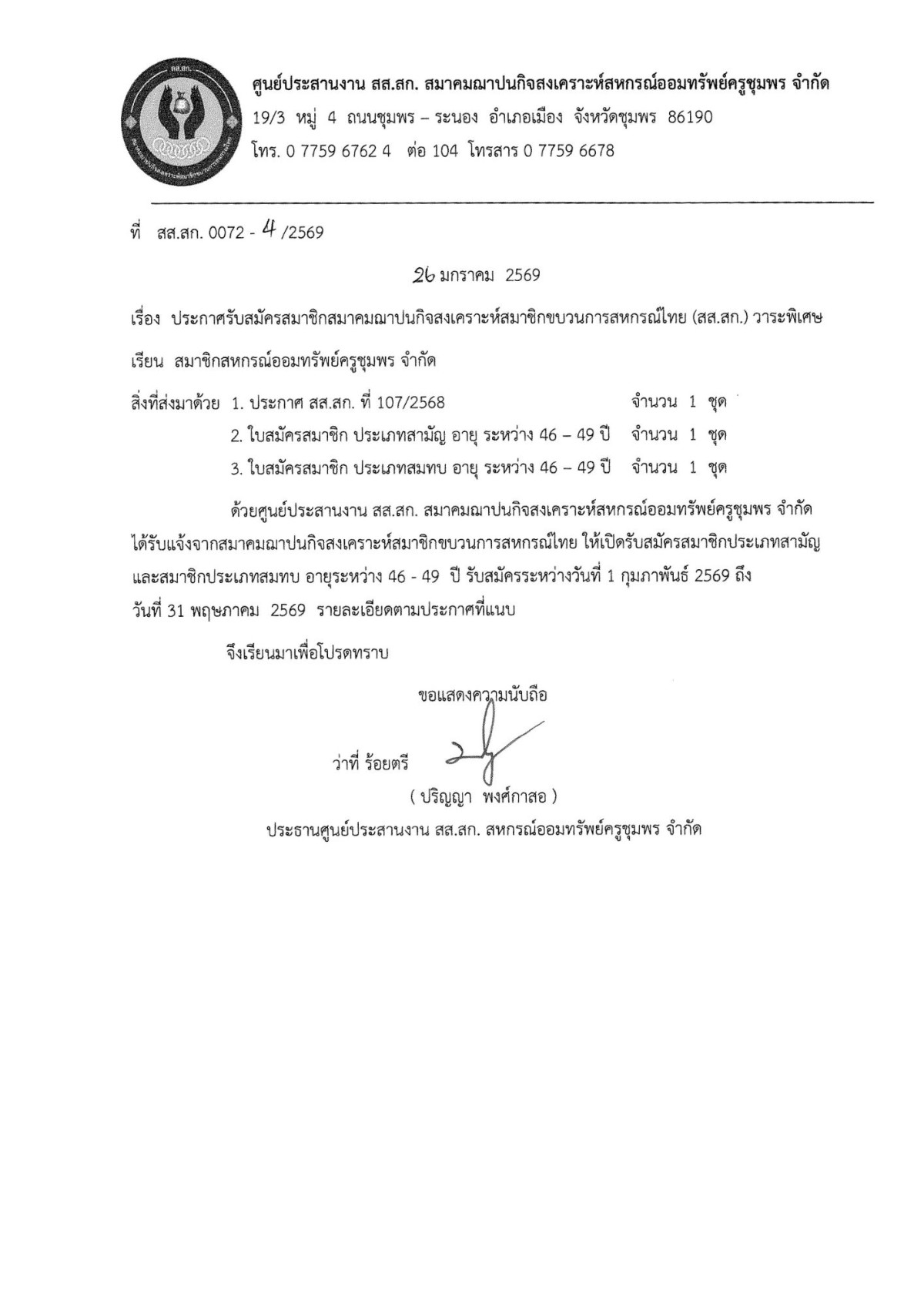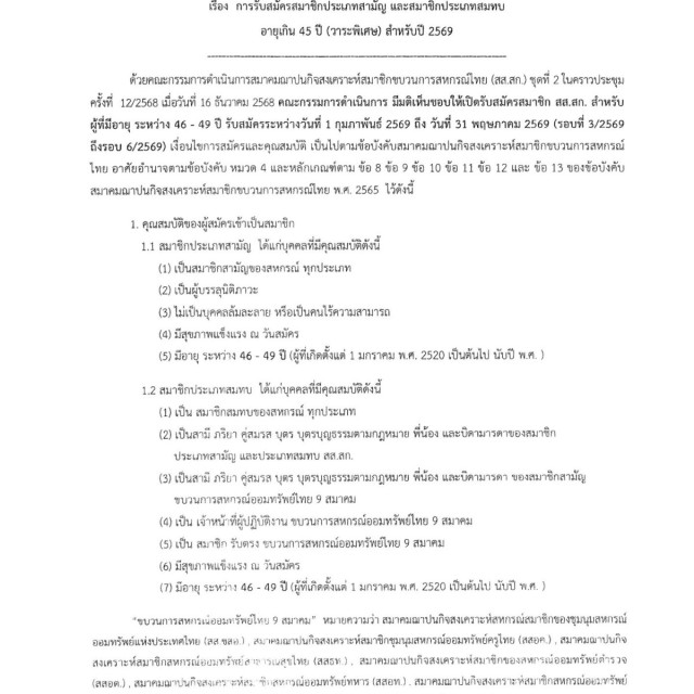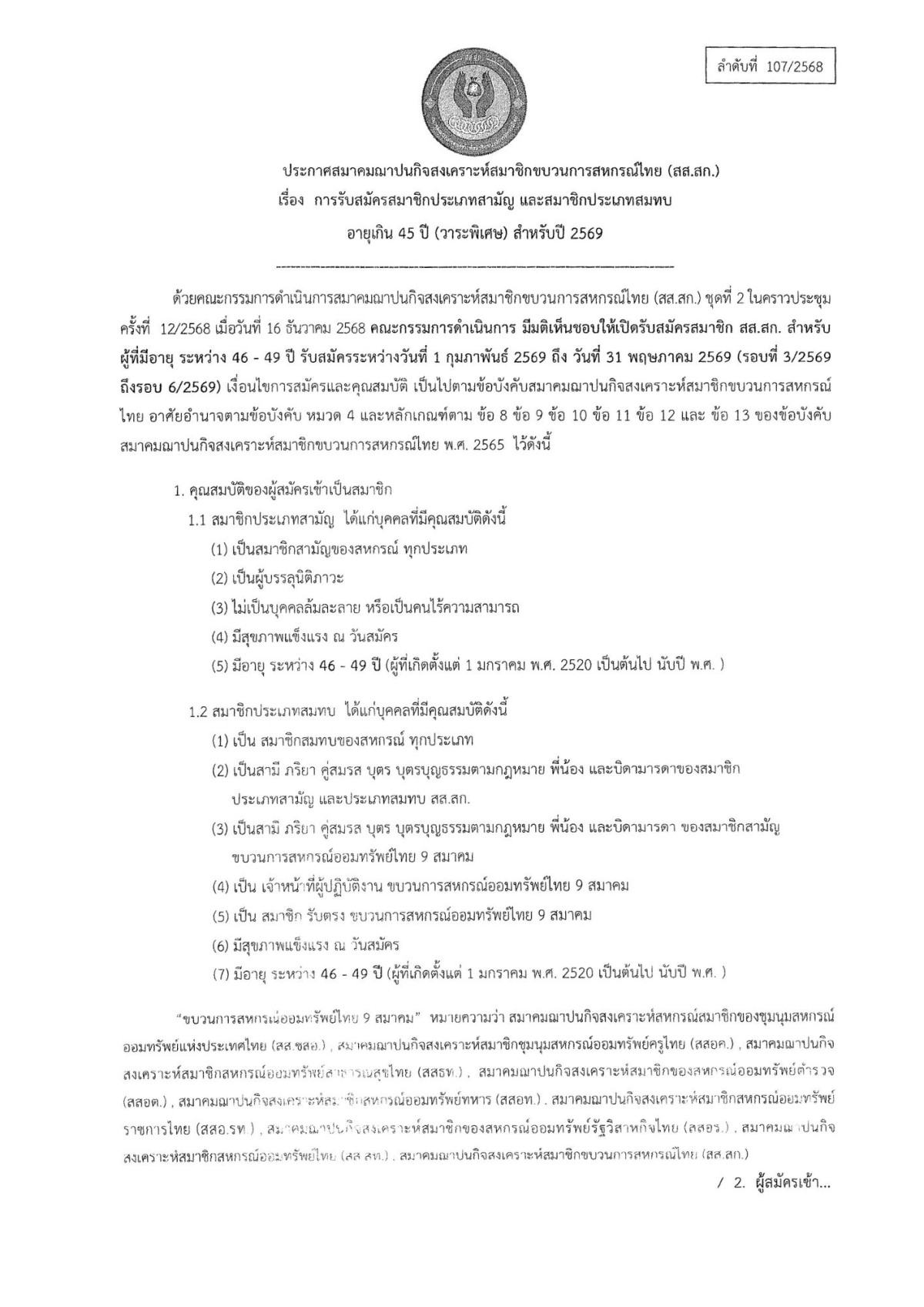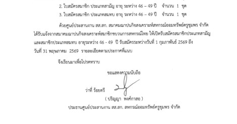 สส.สก. รับสมัครสมาชิกประเภทสามัญ และสมาชิกประเภทสมทบ อายุเกิน 45 ปี (วาระพิเศษ) สำหรับปี 2569