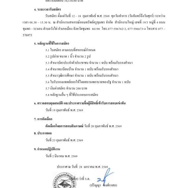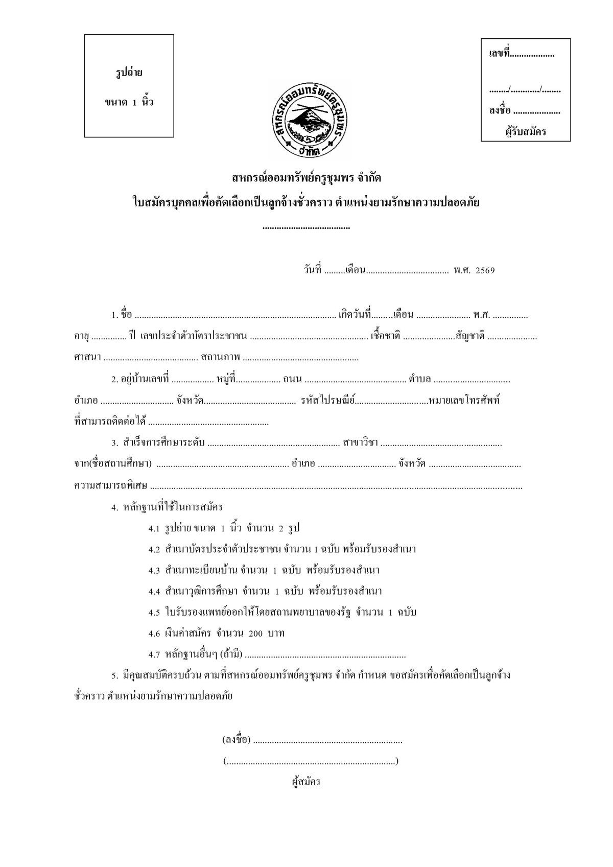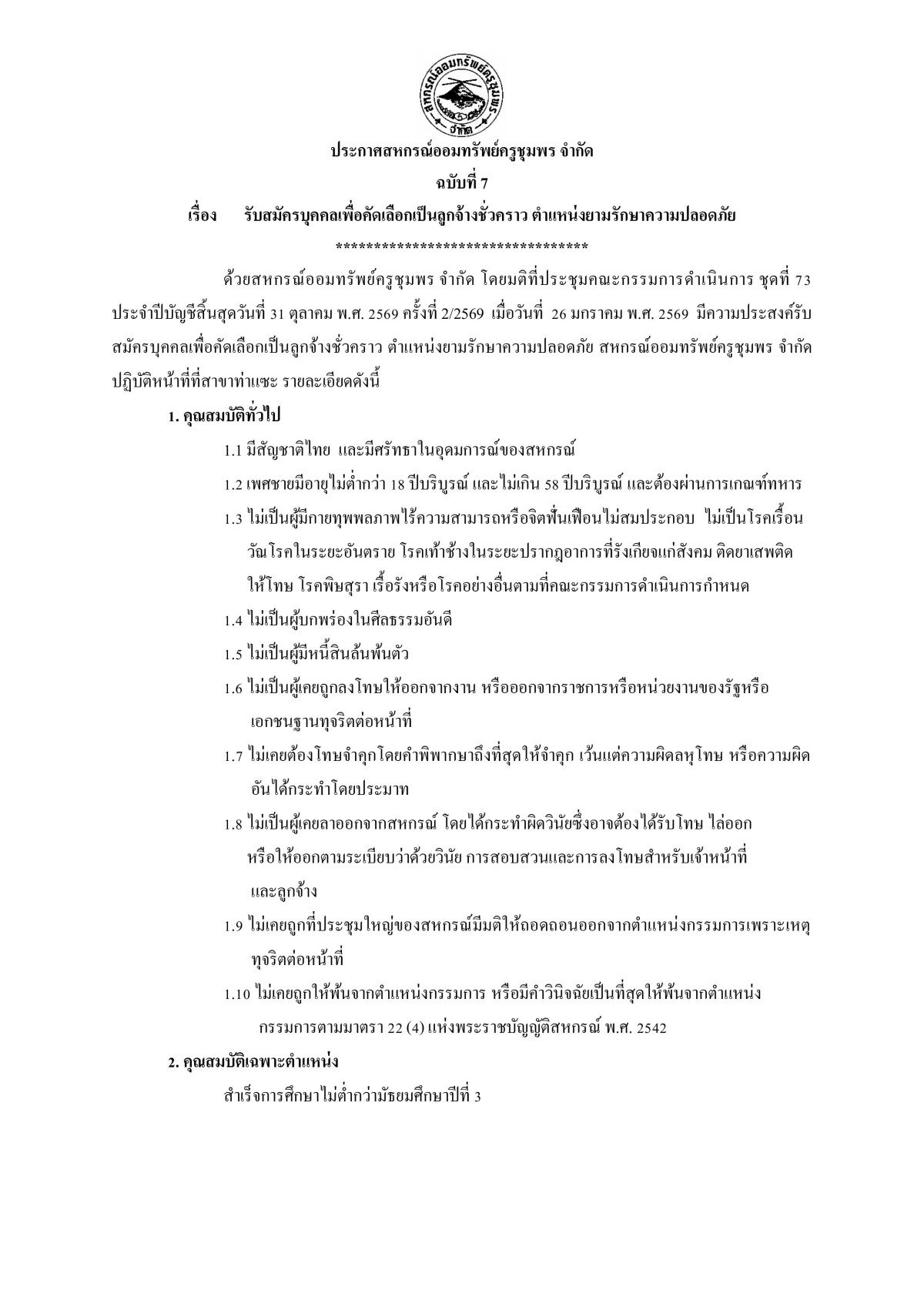 รับสมัครบุคคลเพื่อคัดเลือกเป็นลูกจ้างชั่วคราว ตำแหน่งยามรักษาความปลอดภัย