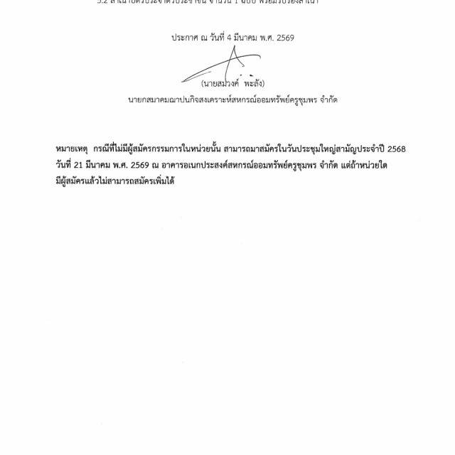 รับสมัครกรรมการดำเนินการ และผู้ตรวจสอบการเงินของสมาคมฌาปนกิจสงเคราะห์ สอ.ครูชุมพร จำกัด