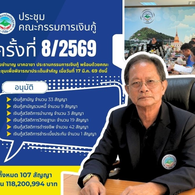 ผลการอนุมัติเงินกู้ตามมติที่ประชุมเงินกู้ครั้งที่ 8/2569 ณ วันที่ 17 มีนาคม 2569