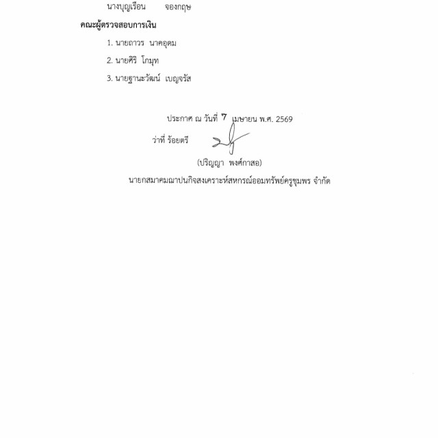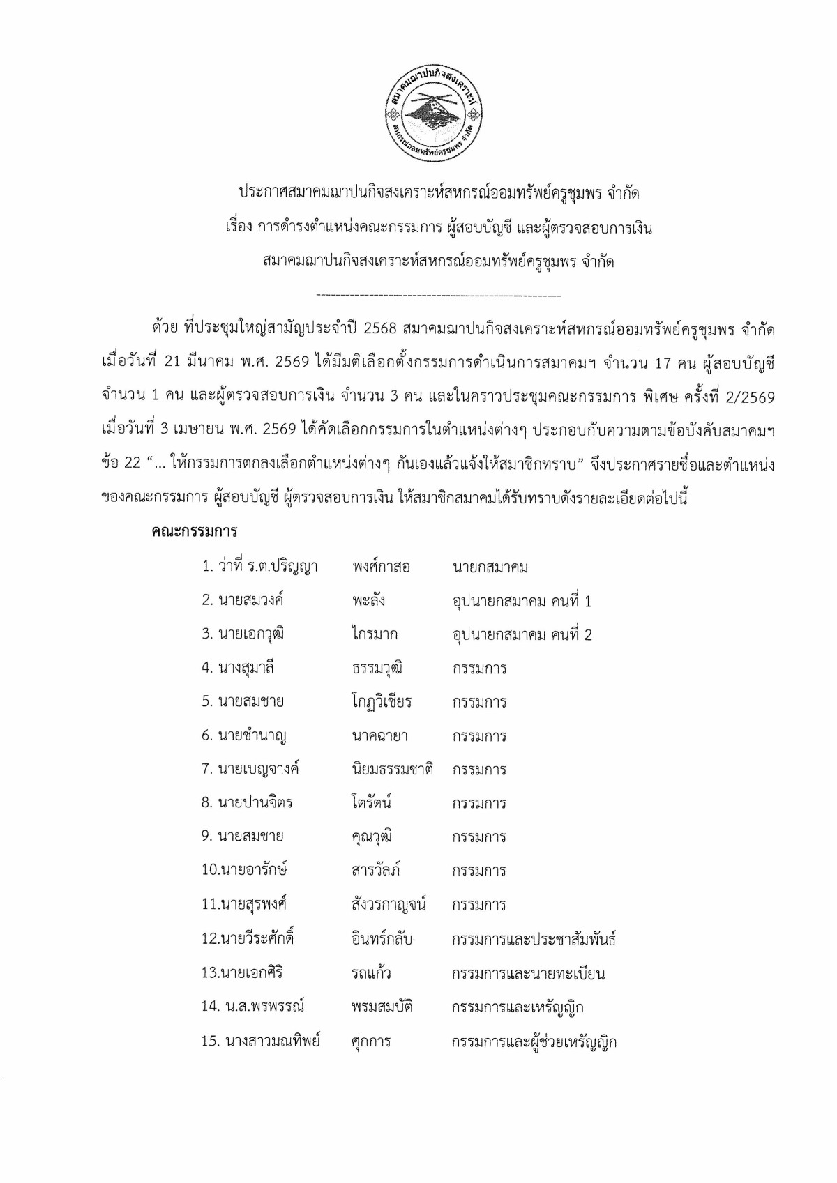 การดำรงตำแหน่งคณะกรรมการ ผู้สอบบัญชี และผู้ตรวจสอบการเงินสมาคมฌาปนกิจสงเคราะห์สหกรณ์ออมทรัพย์ครูชุมพร จำกัด