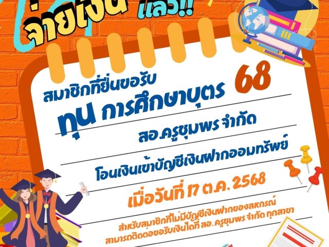 การจ่ายเงินทุนการศึกษาสำหรับบุตรสมาชิก ประจำปีบัญชี พ.ศ. 2568