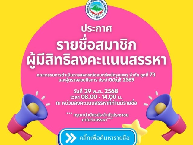 แจ้งรายชื่อสมาชิกผู้มีสิทธิลงคะแนนสรรหาคณะกรรมการดำเนินการ ชุดที่ 73 และผู้ตรวจสอบกิจการ ประจำปีบัญชี 2569
